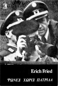 Ο Αυστριακός Erich Fried στοχεύει στην πολιτική τοποθέτηση. Όχι όμως αυτή που υιοθετεί, ούτε αυτή που προβοκάρει απλώς. Χρησιμοποιώντας τη λογική, την ειρωνεία και την απλότητα καταφέρνει μέσα από ωμές φράσεις να θέτει ερωτήματα συνήθως βίαια χωρίς όμως να τα αφήνει να αιωρούνται μετέωρα. Η στάση των γραφόμενών του είναι αταλάντευτα εχθρική απέναντι σε κάθε μορφή εξουσίας, κάτι το οποίο πλήρωσε στην προσωπική του ζωή, όταν κατηγορήθηκε για συμμετοχή στη RAF.