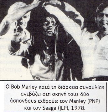 Το 1938 ιδρύθηκε το συντηρητικό κόμμα Jamaica Labour Party (JPL) από τον Alexander Bustamante, αλλά και το People’s National Party (PNP) από τον “σοσιαλιστή” Norman Manley. Μετά το τέλος του 2ου παγκοσμίου πολέμου οι ΗΠΑ αναδεικνύονται σε παγκόσμια υπερδύναμη και παραγκωνίζουν την βρετανική κυριαρχία. Με την επικράτηση του μακαθιρσμού στις ΗΠΑ, ο αντικομουνισμός εισβάλλει στη Τζαμάικα. Τόσο το JPL όσο και το ΡΝΡ αποκηρύσσουν τον μαρξισμό ενώ ο Manley προχωράει σε εκκαθαρίσεις των μαρξιστών που υπήρχαν στο κόμμα του. Η εξουσία εναλλάσσεται ανάμεσα σε αυτά τα δύο κόμματα και ο δικομματισμός κυβερνάει τη Τζαμάικα μέχρι τις μέρες μας. Η ανεξαρτησία ήρθε το 1962 μέσα από μια ομαλή, ελεγχόμενη δημοκρατική μετάβαση. Το 1962 στη κυβέρνηση ήταν το συντηρητικό JPL και ο τρόπος διακυβέρνησής του ήταν εντελώς απολυταρχικός. Ο λαϊκισμός του Manley ηγέτη του κεντρώου ΡΝΡ, που υιοθέτησε την συνθηματολογία των Μαύρων Πανθήρων και των Rastafarians κατάφερε να βρει έδαφος μέσα στους απελπισμένους φτωχούς της Τζαμάικα με αποτέλεσμα ο Manley να κερδίσει την εξουσία το 1972. Γρήγορα ο Manley βρέθηκε στο στόχαστρο των HΠΑ καθώς ο Manley καταδίκασε το καθεστώς του απαρτχάιντ στη Ν.Αφρική και υποστήριξε των αγώνα των μαύρων για τη χειραφέτηση και την ελευθερία τους. Επισκέφτηκε δε τη Κούβα για να συνάψει διπλωματικές σχέσεις. Η νέα κυβέρνηση ανακοίνωσε επίσης και την παύση της φοροαπαλλαγής για τις αμερικάνικες και καναδικές εταιρείες εξόρυξης βωξίτη και τις υποχρέωσε να πληρώνουν υψηλούς φόρους. Οι αποφάσεις του Manley δεν άρεσαν καθόλου στις ΗΠΑ και έτσι η CIA ανέλαβε δράση, εξαπολύοντας μια εκστρατεία τρόμου για την αποσταθεροποίηση του καθεστώτος. Πράκτορες της έκαναν τυφλές βομβιστικές ενέργειες, σκορπίζοντας φόβο στη κοινωνία και δεκάδες νεκρούς. Παράλληλα, εξόπλισε συμμορίες που πρόσκεινται στο συντηρητικό κόμμα, με αποτέλεσμα η βια στους δρόμους να ξεφύγει από κάθε έλεγχο και ο ανταγωνισμός μεταξύ των διαφόρων συμμοριών για τον έλεγχο της κάνναβης να “συνδυαστεί” με τον δικομματισμό. Την ίδια πολιτική ακολούθησε και το ΡΝΡ, εξοπλίζοντας συμμορίες για λογαριασμό του. Το καθεστώς τρόμου που αναδυόταν προκαλούσε εμφυλιακές καταστάσεις. Χαρακτηριστικό είναι το γεγονός που συνέβη το 1978 σε συναυλία του Bob Marley στο Kingston . Ο Marley κατάφερε να ανεβάσει στη σκηνή τους δύο αρχηγούς των αντιπάλων κομμάτων για να δώσουν το λόγο τους ότι θα σταματήσουν την αιματοχυσία και να γίνει έτσι μια αρχή για το τέλος του άτυπου εμφυλίου. Μετά από μερικές μέρες άγνωστοι γάζωσαν το σπίτι του Bob Marley.