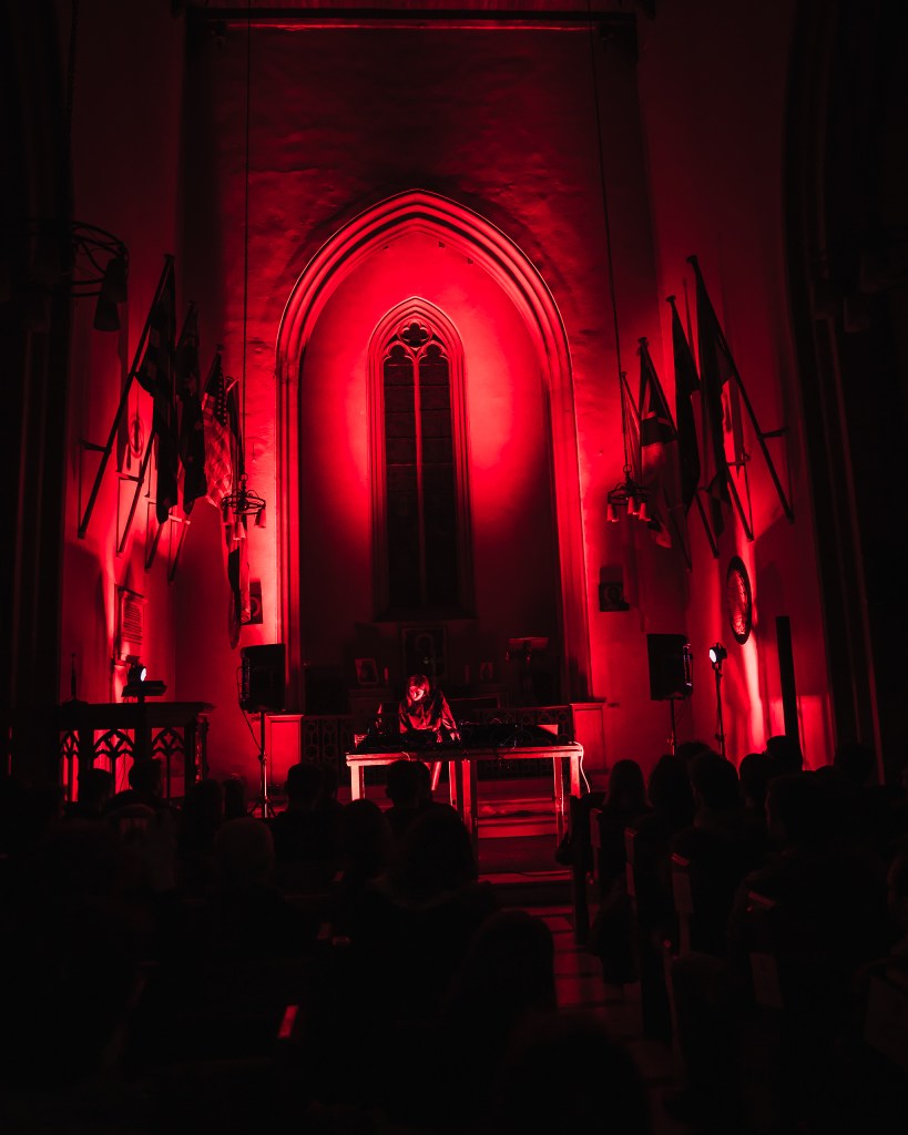 Initially I don’t think this certain show (or maybe every show?) by Kali Malone could be described with words or be analysed even. On the other hand, by balancing between sharp minimalism and thick darkness, her music can not be felt with feelings only. The rough analog sound combined with frequencies of pre-recorded cello playing had something of mathematisc on its core, while their intesity was spontaneous.