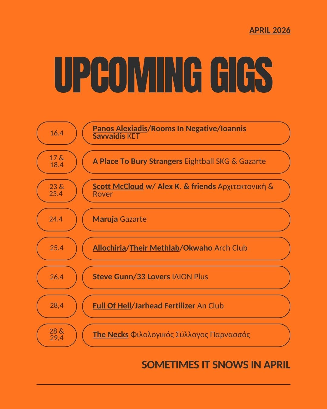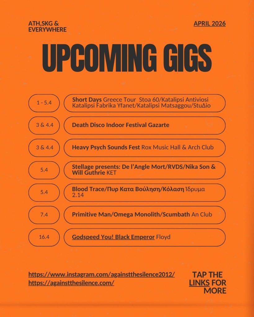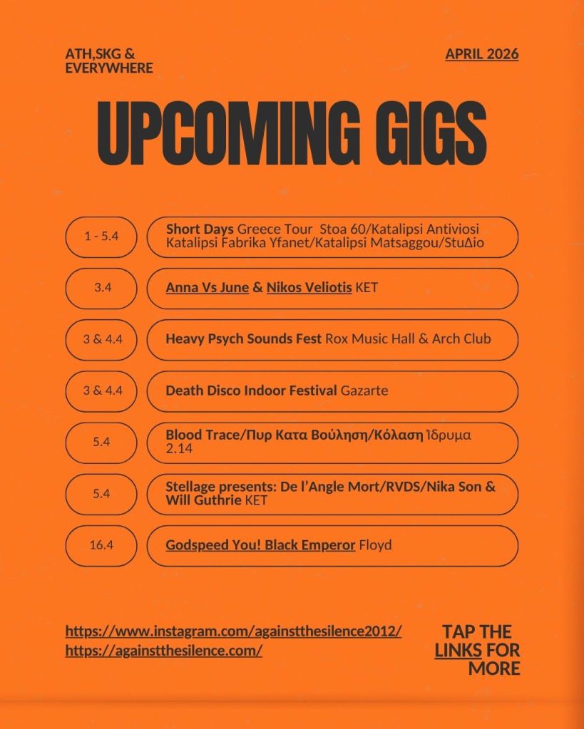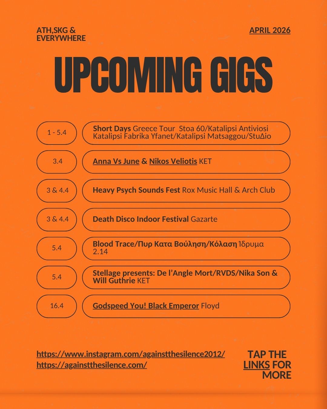 Καλό μήνα κι ας είναι οι βραδιές του προγράμματος που ακολουθεί όμορφες σαν ψέμα. Όπως πάντα είμαστε δεκτικοί σε παρατηρήσεις και προσθήκες. Πάνω στα υπογεγραμμένα ονόματα θα βρείτε συνδέσμους με περισσότερες πληροφορίες από το against the silence. Enjoy!